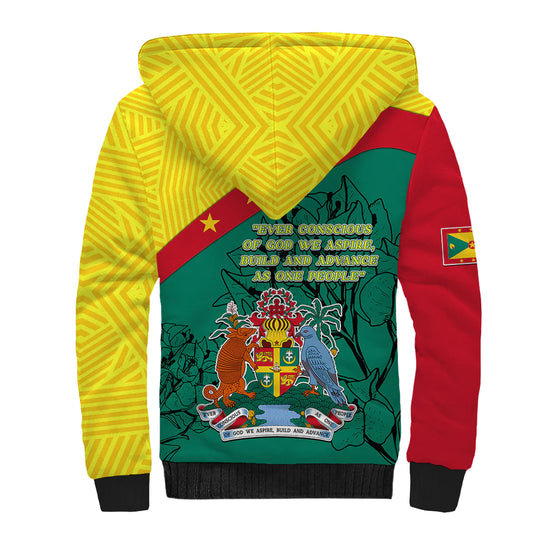 Grenada Sherpa Hoodie Coat Of Arms With Bougainvillea Flowers TS06