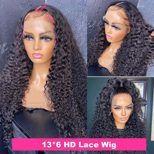 Glueless 30 40 Inch Loose Deep Wave Water wave Frontal Wigs
